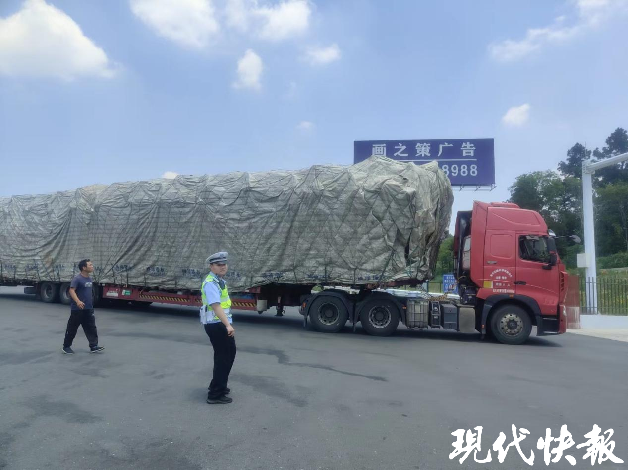 现代快报记者了解到,近期南京高速交警九大队查获一起货车超限违章,随后交警将车辆带至G4211苏皖省界公路超限检测站,由交通综合执法人员对超限车辆称重、驳载。