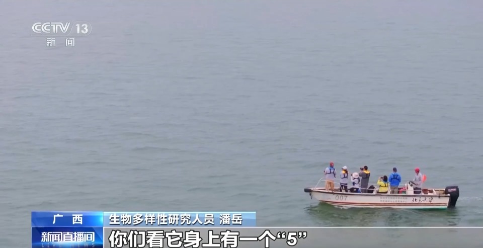 生物多样性研究人员 潘岳:这个叫“五嫂”,它身上有一个“5”,身体左侧背鳍下面花纹的形状,像阿拉伯数字的“5”,它是母的,我们就叫“五嫂”。