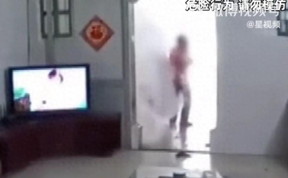 之后油烟机也倒在了地上