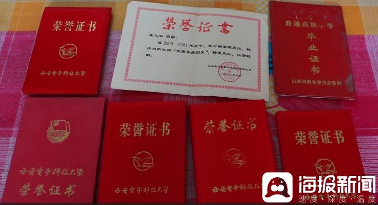 燕河村博士孟凡军读书时各项奖学金证书及其他荣誉证书。