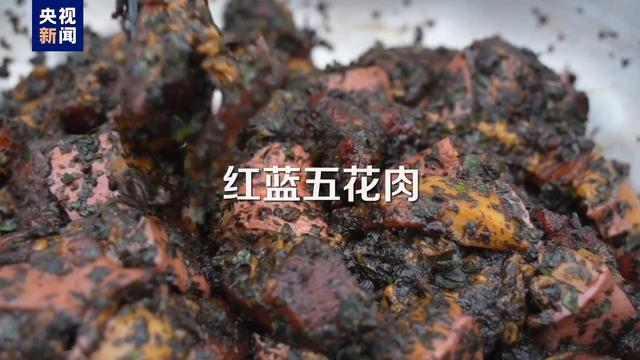 “红蓝叶”,一种当地人家家户户都会种植的草本植物,也是“台山粽”独特风味的关键所在。将红蓝叶洗净后剁碎,使其与空气充分氧化,叶子颜色便会由绿变红。将五花肉与红蓝叶混合后,肉会裹上一层朱红,不仅增添独特香味,还能解去油腻。