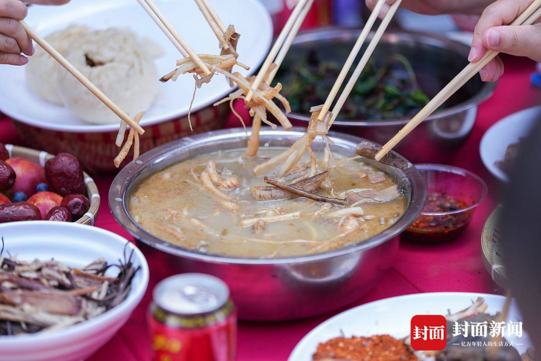 △游客品尝“药根宴”