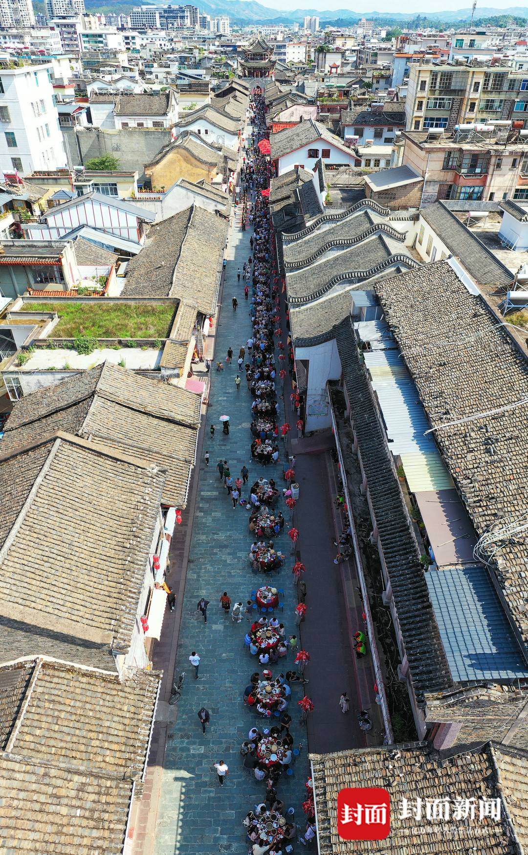 6月10日下午,在四川省凉山州会理市,2024年“药香千年·古城盛宴”端午万人“药根宴”热闹开席。当天,会理古城8条街巷、广场摆满了1200桌“药根宴”,全市共设宴3000多桌,满城飘香。