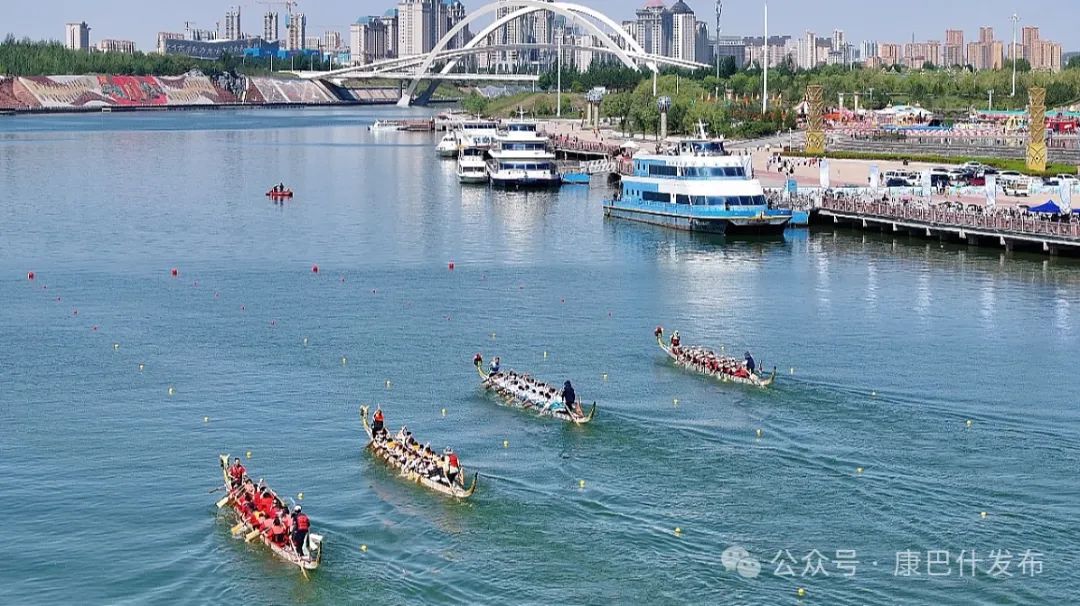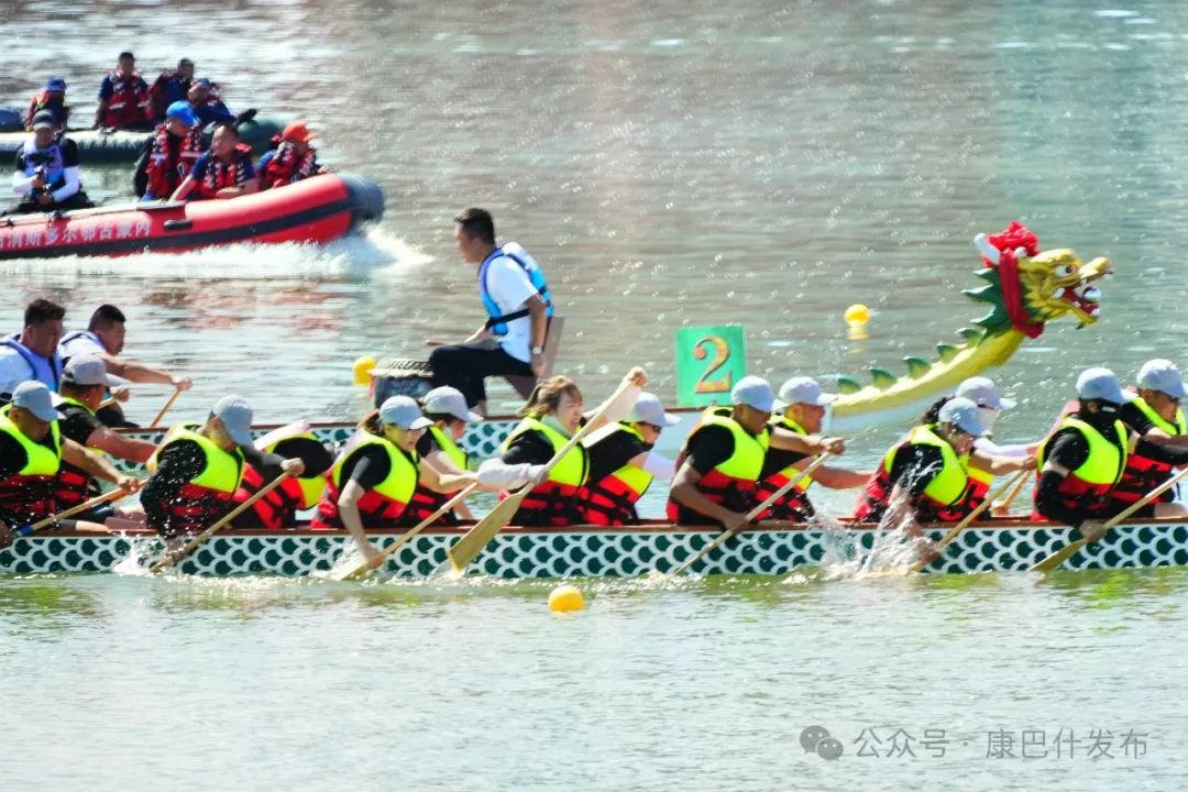 6月9日,乌兰木伦湖面波光粼粼,湖畔人头攒动,一场别开生面的龙舟赛激情开赛。