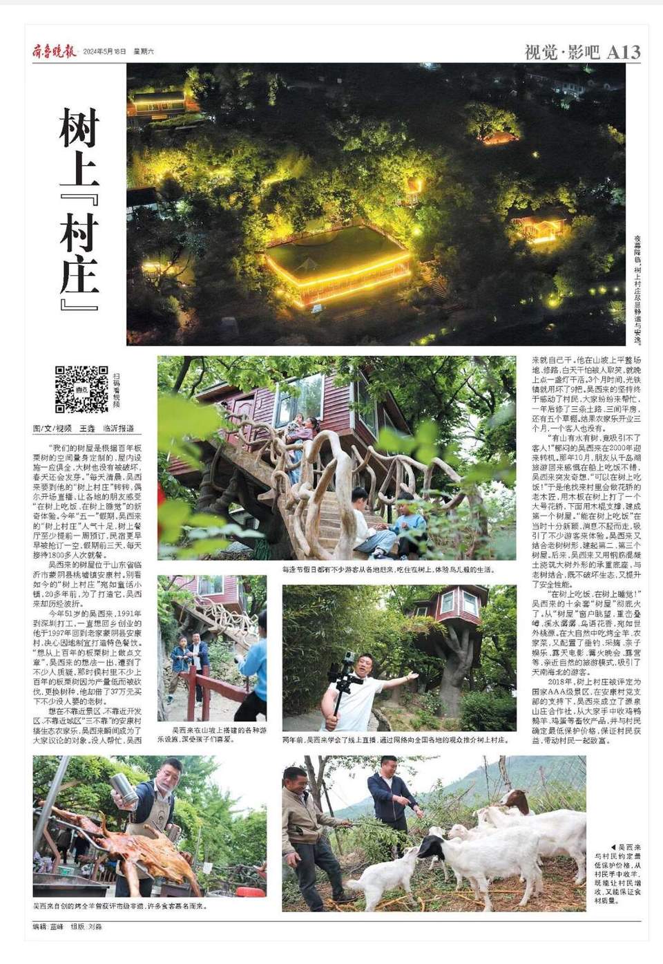 “我们的树屋是根据百年板栗树的空间量身定制的,屋内设施一应俱全,大树也没有被破坏,春天还会发芽。”每天清晨,吴西来要到他的“树上村庄”转转,偶尔开场直播,让各地的朋友感受“在树上吃饭、在树上睡觉”的新奇体验。