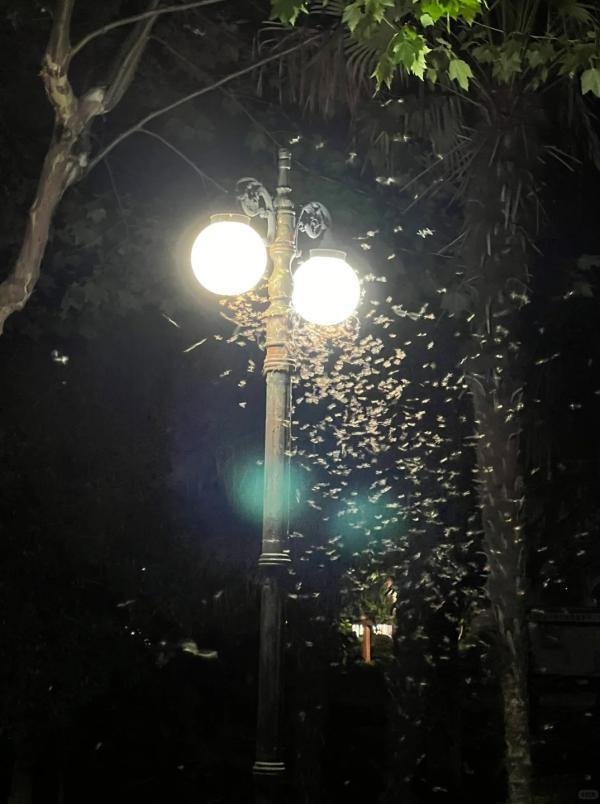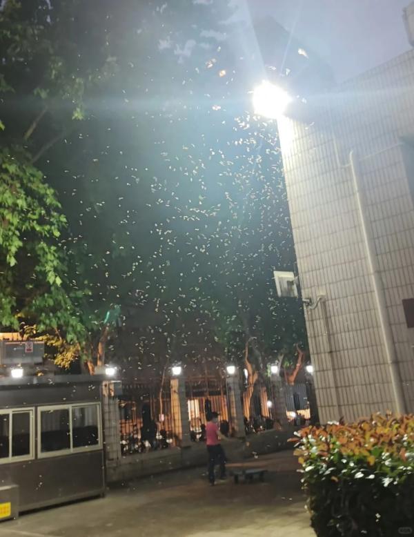 6月11日晚间,不少上海市民发现,身边突然出现大量白蚁。路灯下、公交站、运动场、楼宇办公室、甚至居民家中……潮湿闷热的天气下,一群群白蚁围着光源飞来飞去。在微博、小红书、朋友圈等平台上,不少网友都发布了上海白蚁漫天飞舞的图片或视频。