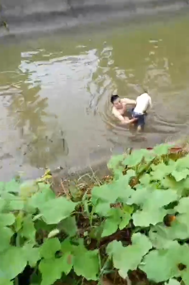 10日当天正是端午佳节,下午两点半左右,熊松林开车去舅舅家,途径韶山灌渠的路上,他看到河对面有个大爷在喊着什么,神情焦急。于是熊松林把车靠边停下,想下车看看。