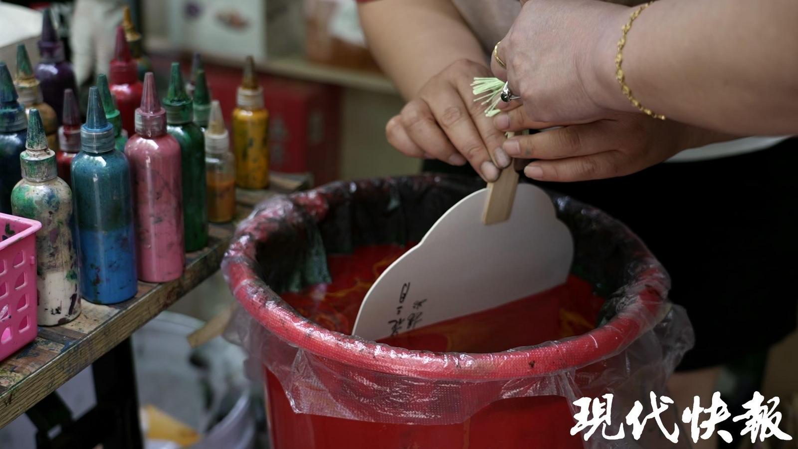 “我们是今年初开始做‘非遗漆扇’这个体验项目的。”6月10日,在一家专门卖扇子的店内,琳琅满目的图扇和折扇让人应接不暇,仿佛进入了扇子的博物馆,在进门最显眼的位置,也摆出了一套制作漆扇的工具和彩漆,不少游客对此非常感兴趣,排队等着体验。“一把扇子只要20多块钱,最关键的是无法预计的美,让人非常着迷。”亲手体验漆扇制作的山东游客黄女士对自己的作品爱不释手,她特意将体验漆扇作为这次旅游的一个打卡项目,而结果也让她非常满意。