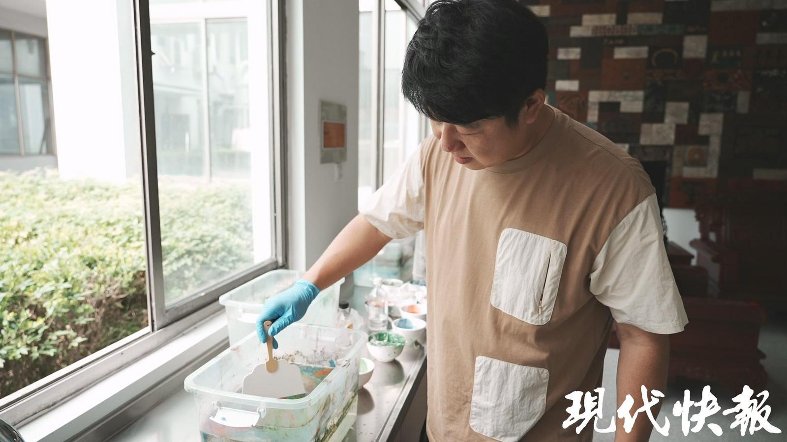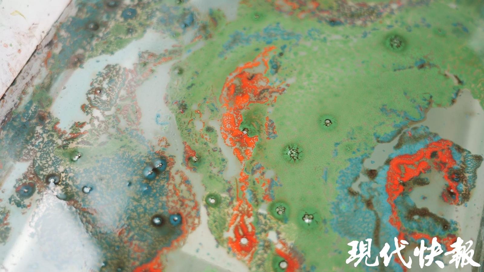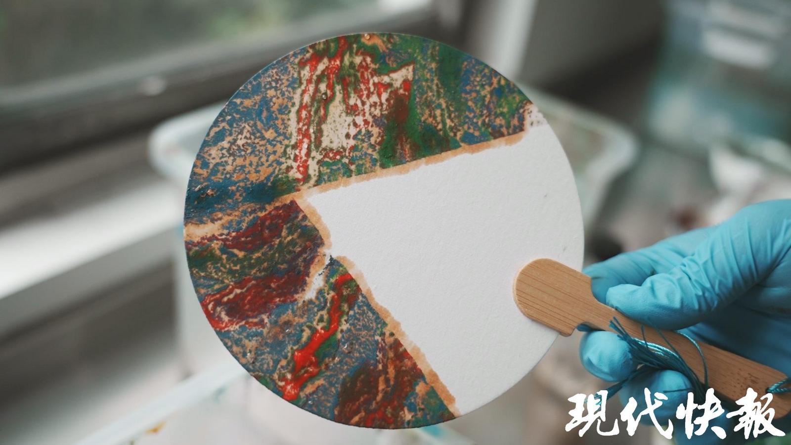 “我们在制作大漆漆画的时候,也会用到类似的手法。”扬州漆器厂创新工作室副主任蒋超告诉现代快报记者,在漆画制作过程中,他们也会将大漆进行稀释,使之形成流动状态的各色“漂流漆”。蒋超告诉记者,早在七八年前扬州漆器厂就开始制作漆扇这一类创新的漆器工艺品。