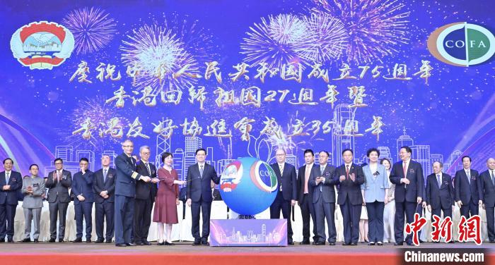 中新网香港6月13日电(记者戴小橦)“庆祝中华人民共和国成立75周年、香港回归祖国27周年暨香港友好协进会成立35周年典礼”13日在香港会展中心举行。香港特区行政长官李家超、中央人民政府驻香港特别行政区联络办公室主任郑雁雄、香港友好协进会会员以及香港各界人士等出席典礼。