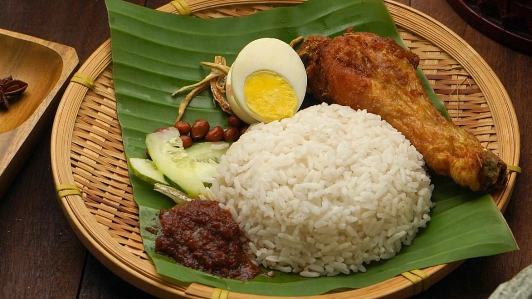 要不是因为国足,很多人或许并没有听过椰浆饭这种食物。椰浆饭,马来语叫做“Nasi Lemak”,其中,“Nasi”指的是饭,而“Lemak”指的是油脂,也就是椰浆。一般情况下,市场上售卖的椰浆饭通常由椰浆饭、叁巴酱、炸花生凤尾鱼、黄瓜片和半个煮鸡蛋构成,当然,你还可以根据自己的口味加上炸鸡、海鲜、仁当、炒空心菜等配菜。至于包装,传统上会采用香蕉叶,而到了现在,盘子、棕色蜡纸,都是用来承载这一传统马来食物的容器。