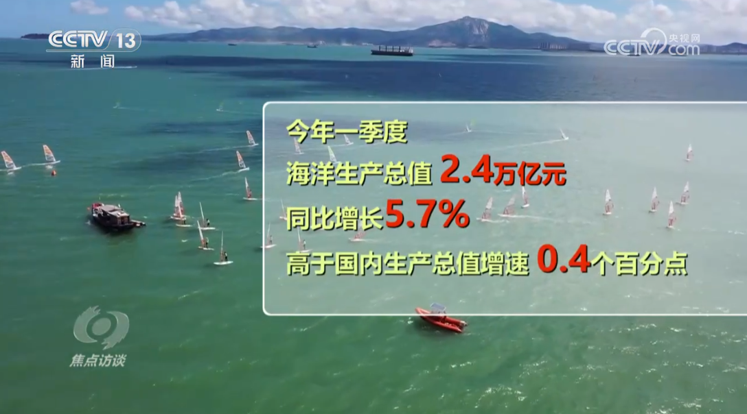 自然资源部发布的最新数据显示,今年一季度海洋生产总值2.4万亿元,同比增长5.7%,高于国内生产总值增速0.4个百分点。
