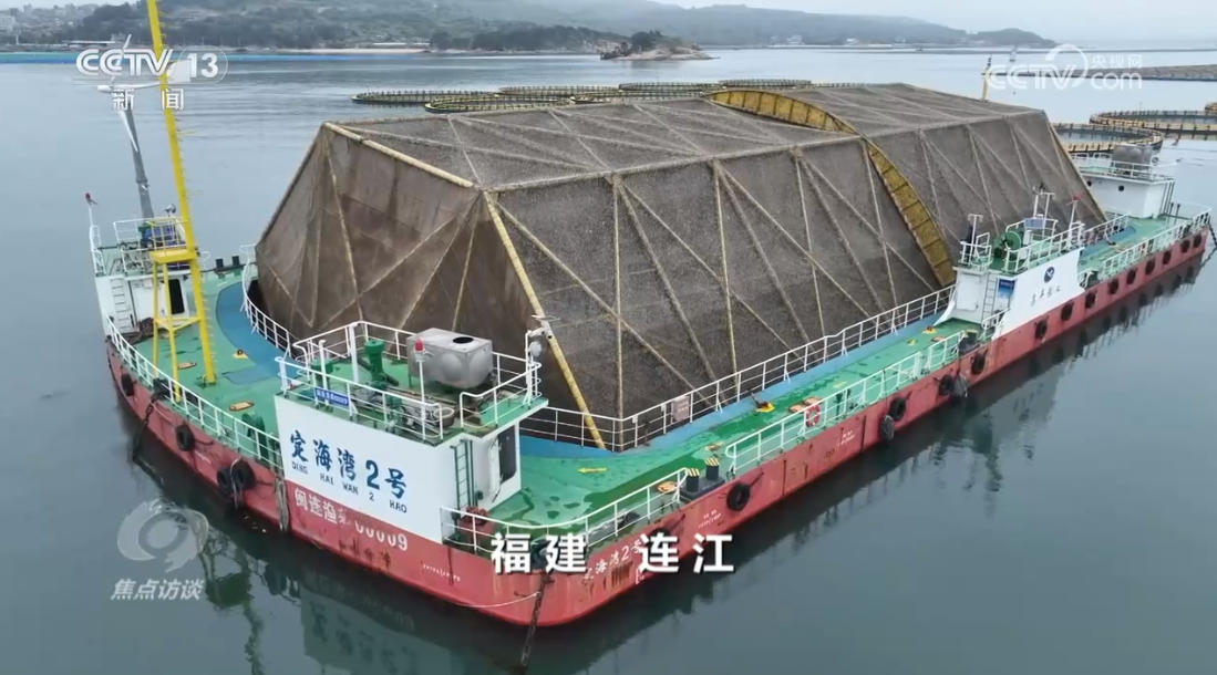 在福建连江的一处远海养殖平台,有一种新型的机械化养殖设备,它的占地面积有三个篮球场大,还可以抵御十五级台风。养殖平台的主体可以进行升降、旋转操作,通过日晒、风干去除附着在上面的海洋生物,来保障养殖鱼类的成长环境。