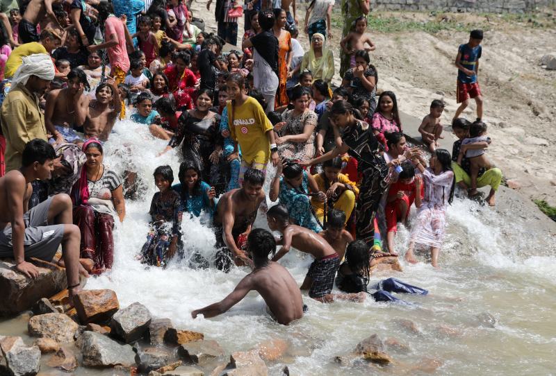 5月31日,印度新德里,当地高温天气持续,市民戏水消暑。图/IC photo