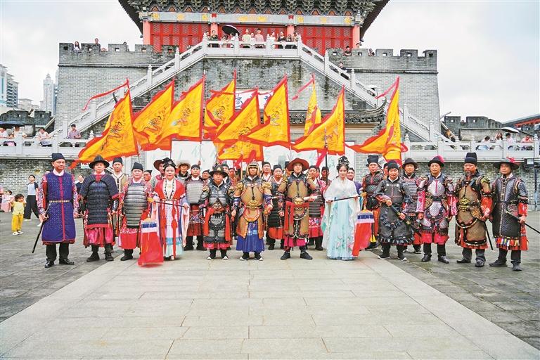 当鼓声隆隆,城门在众人的期待中缓缓开启,身着古代盔甲、手持兵器的“爱心爸爸”们在城门两侧整齐列队。这一刻,他们仿佛穿越时空,化身为古代英勇的将士。