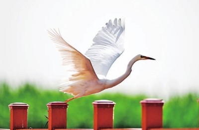 在乌梁素海拍摄的白鹭。新华社记者贝赫摄