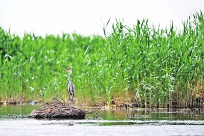 在乌梁素海拍摄的苍鹭。新华社记者贝赫摄