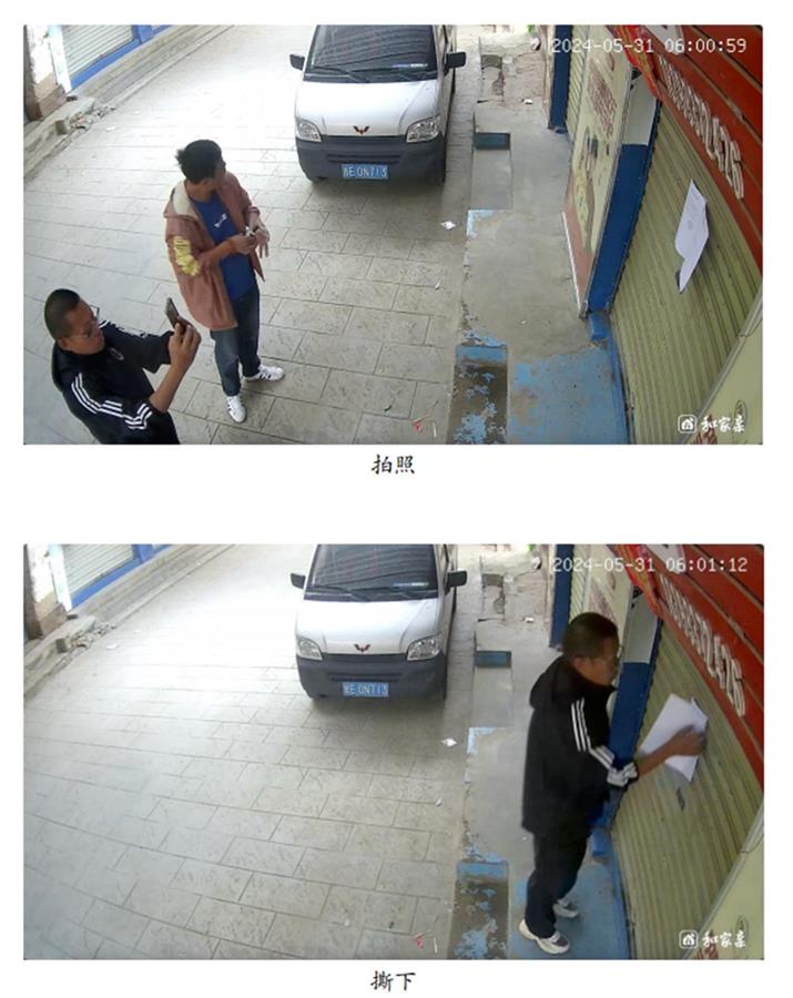 代理律师指出,2024年5月31日清晨6时许,烟草局工作人员前往阮双全原经营地址(现为母婴店)张贴上述文书、拍照后撕下,以伪造2021年3月4日的送达过程。经询问调查,母婴店2021年未粘贴春联,但被告送达照片中该店铺有春联横批,张贴情况与2024年完全一致。其中,被告工作人员2024年5月31日6时拍摄的照片,系被告提交卷宗中的送达照片。