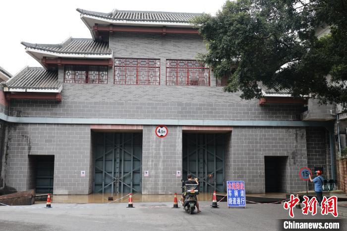 6月19日9时40分,广西柳江柳州水文站出现86.3米洪峰水位,超警戒水位3.8米。洪峰来袭,柳州沿江低洼地段被浸泡在洪水中,沿河居民区被淹至二楼。柳州相关部门出动快艇,穿梭在浑浊的洪水中,转移有需要的受困民众。图为柳州市沿江路段一处防洪闸关闸。 中新社记者林馨摄