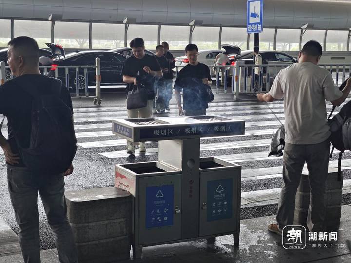 南北出口因为远离地铁出站口,主要是送站车辆的下客区,不少刚刚下车的乘客,就会按捺不住烟瘾,选择一下车就点上一根。