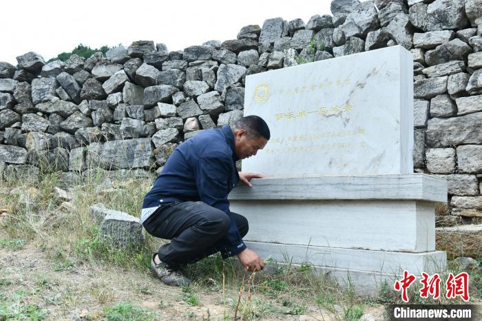今年52岁的岳书臣,是河北省邢台市信都区明水村村民,从1997年开始义务守护村庄附近的马岭关长城,到现在已坚持27年。马岭关长城地处太行山深处,是“太行山五大雄关”之一。现存的马岭关长城,建于明嘉靖年间,目前长城的关口、城墙、卫所、敌台、烽火台等建筑均有遗存,部分保存完好。图为6月18日,岳书臣在查看长城保护界桩。高晓博摄