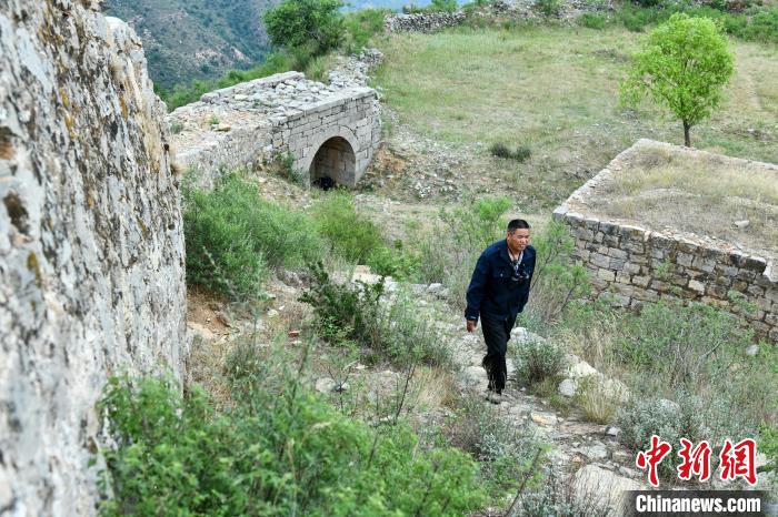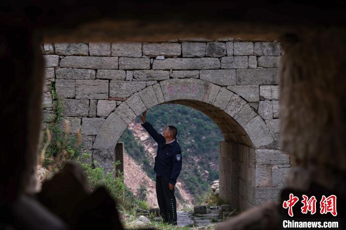 今年52岁的岳书臣,是河北省邢台市信都区明水村村民,从1997年开始义务守护村庄附近的马岭关长城,到现在已坚持27年。马岭关长城地处太行山深处,是“太行山五大雄关”之一。现存的马岭关长城,建于明嘉靖年间,目前长城的关口、城墙、卫所、敌台、烽火台等建筑均有遗存,部分保存完好。图为6月18日,岳书臣在查看马岭关关口券门情况。高晓博摄