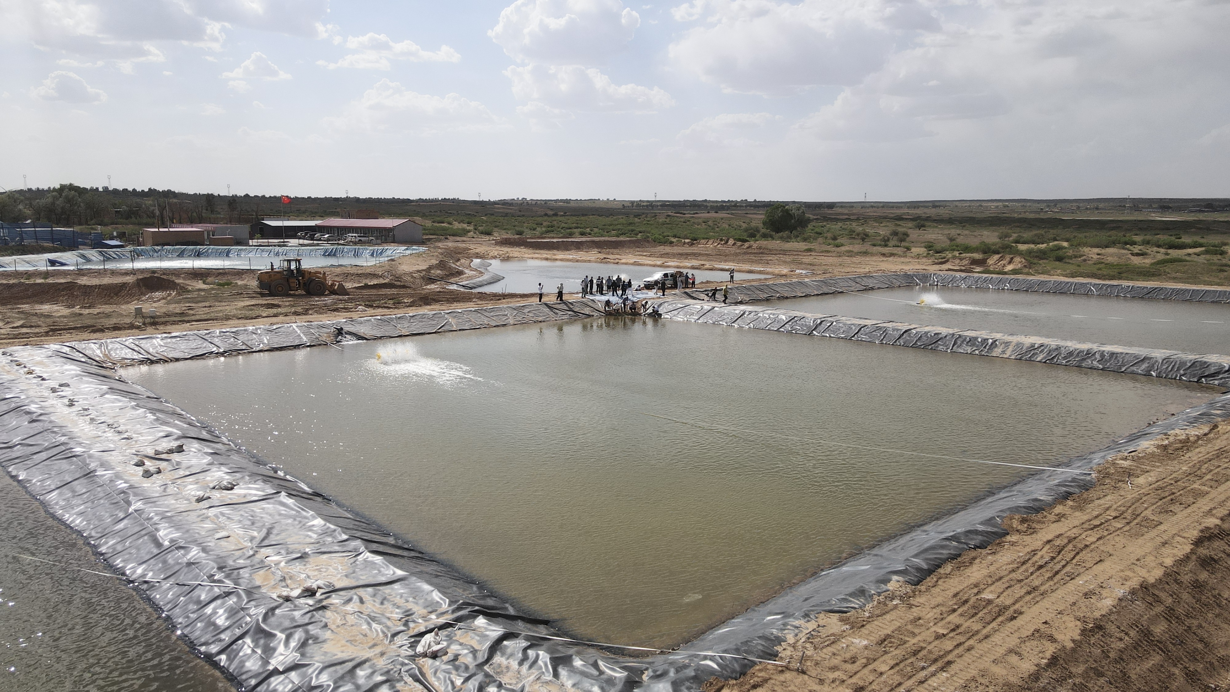 定边盐湖被开发为适宜养殖海鲜的池塘。受访者供图
