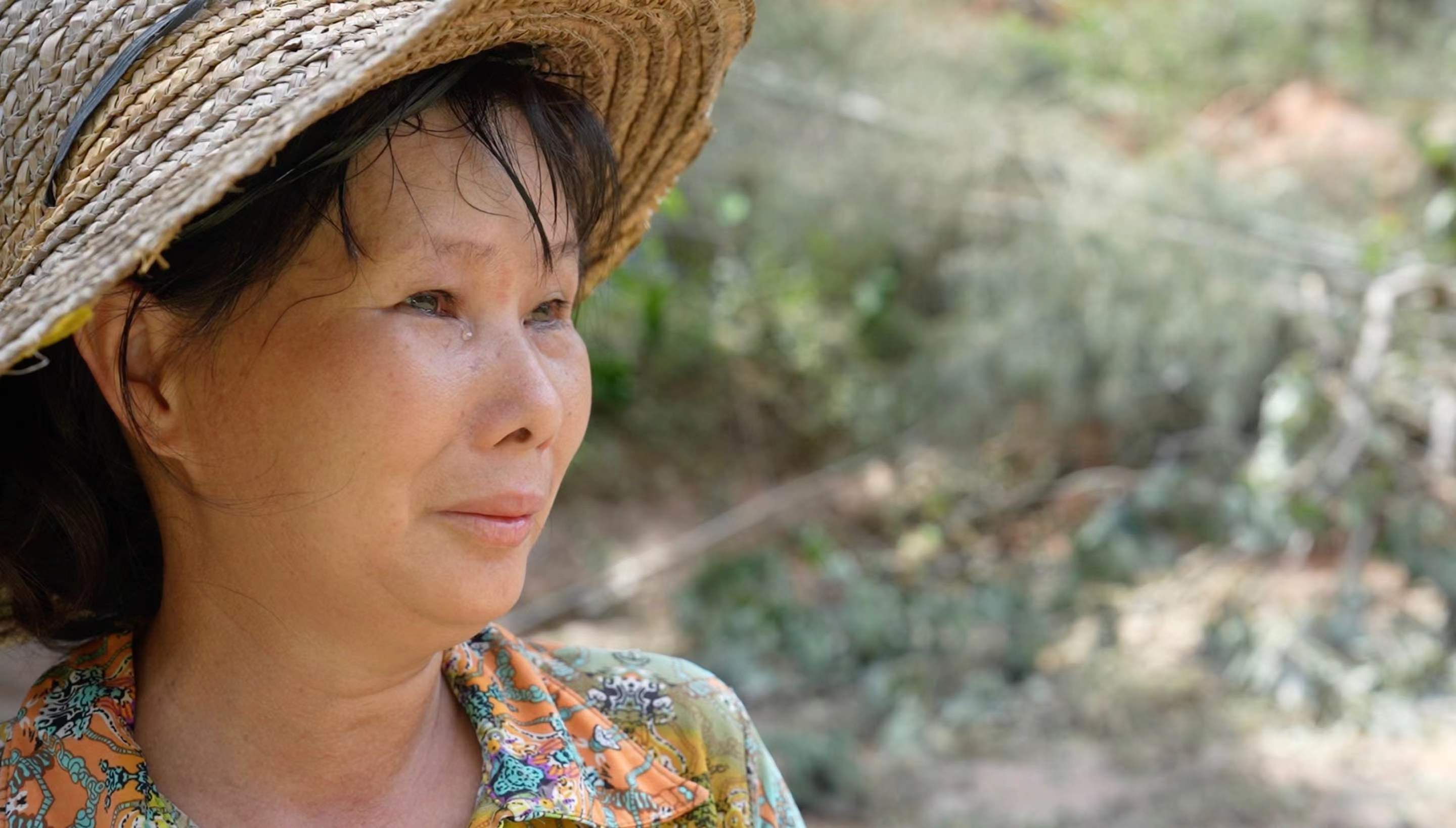 6月19日中午,谢贵和邱莲到田里查看,谢贵一路沉默低头,从湿软的泥中拔出水鞋。邱莲止不住掉眼泪,用客家话重复着“都無咯,無用咯”。