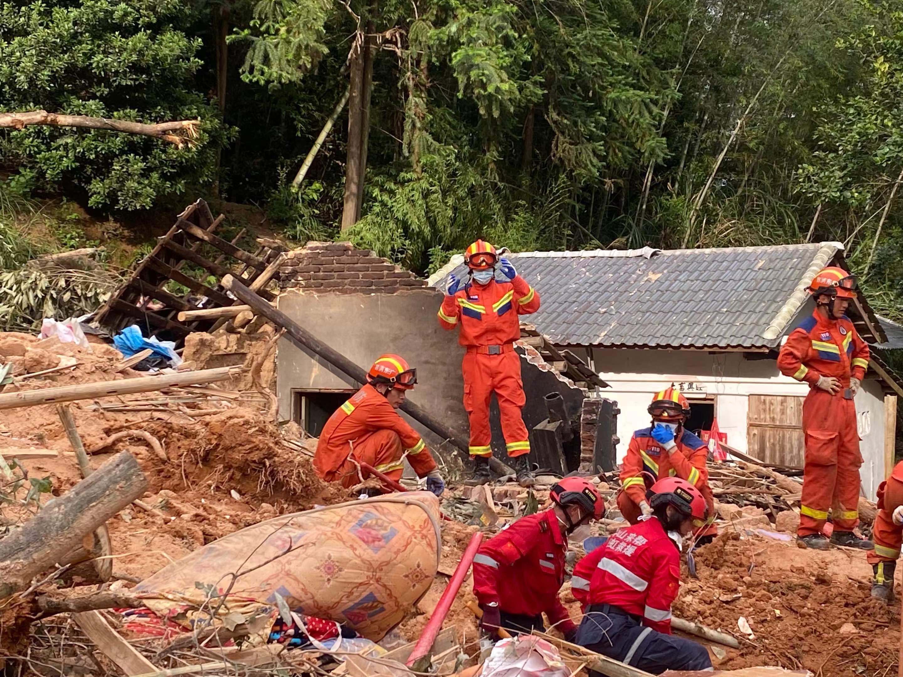 当直升机降落在泗水镇文贵村,一场昼夜未停的挖掘仍在进行。谢礼传盯着翻出的土,已是两眼血丝。他的父亲、哥哥、嫂子,连同另外7个村民,都在他家避雨时被突如其来的滑坡掩埋。一旁轮替下来休息的救援人员难掩疲惫地点了枝烟,“现在只能祈祷不要埋得太深”,他说。