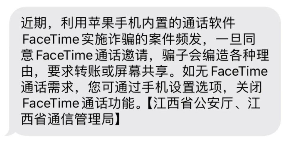 我国任何官方平台不会以FaceTime这类设备自有软件、个人社交账号等方式与您沟通。网上自称微粒贷、支付宝、百万保障、银行等工作人员以调整利率、到期扣费、影响征信为由要求转账的都是诈骗。请勿随意接听陌生人的视频请求,保护个人面部信息隐私,验证码、密码等个人信息一定不可告知他人,切记不能与陌生人开启屏幕共享。