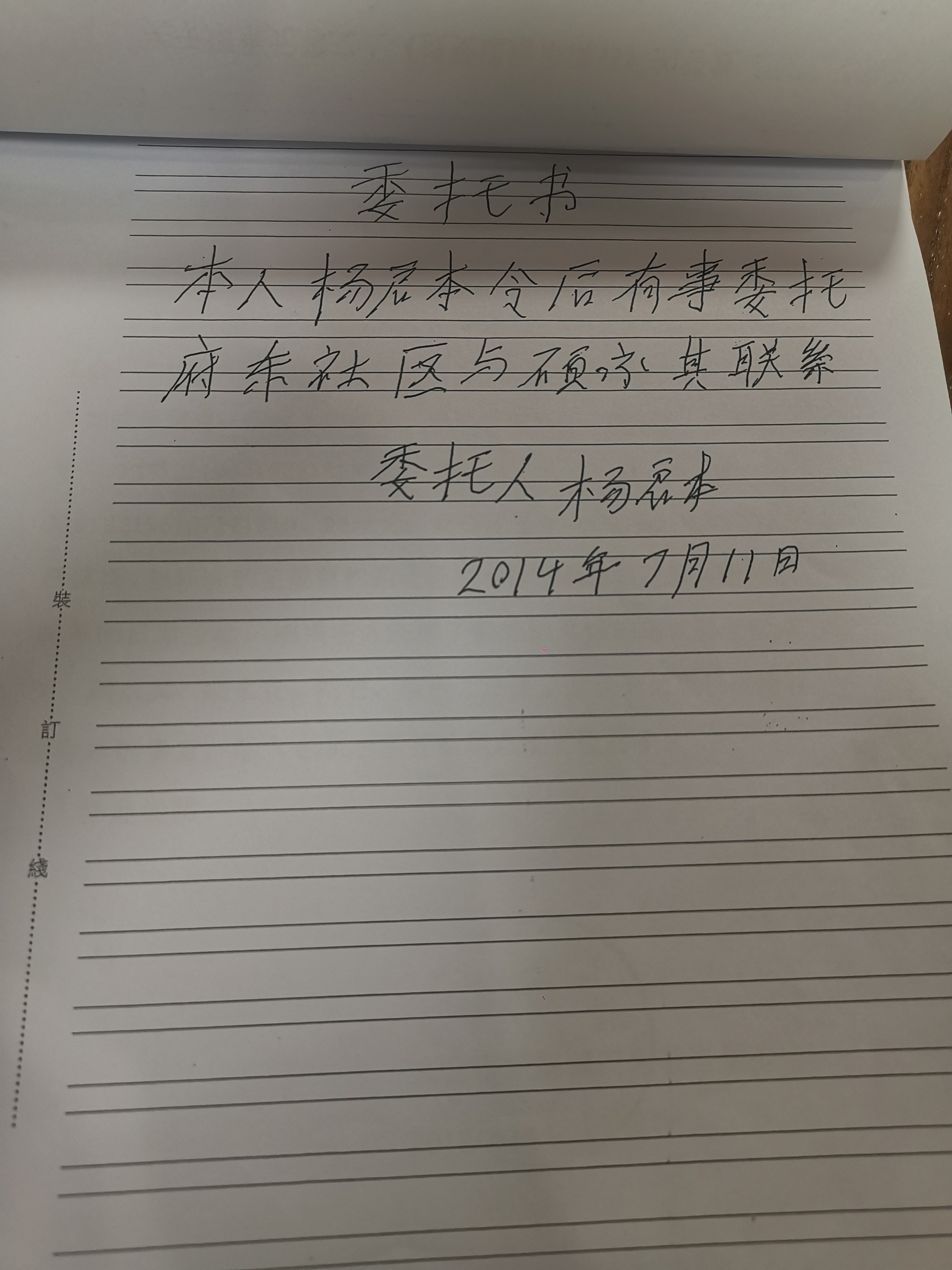府东社区居委会出具的《关于杨启本晚年生活的情况说明》。