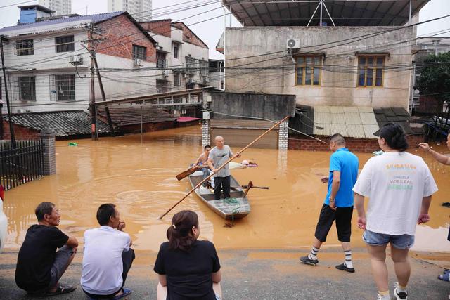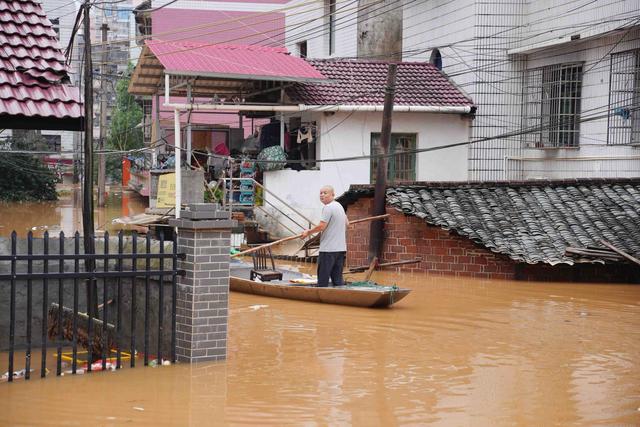 受持续强降雨的影响,湖南岳阳平江县多地发生内涝。不少居民自发组织救援,7月1日,在平江县城关镇城西村西临巷,一居民靠自家小船成功转移了数十人。目前,他仍帮忙向一些不便转移的被困人员运送物资。