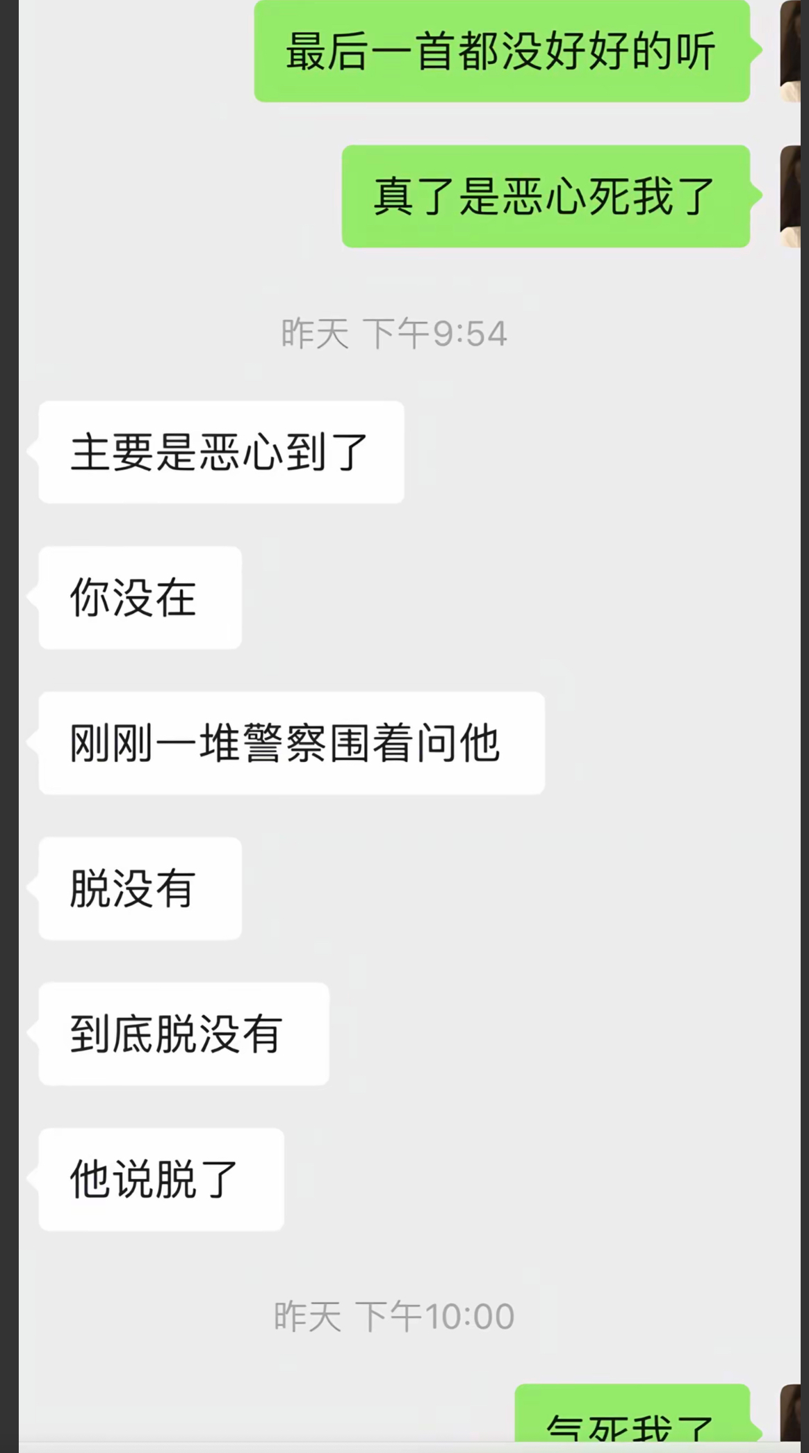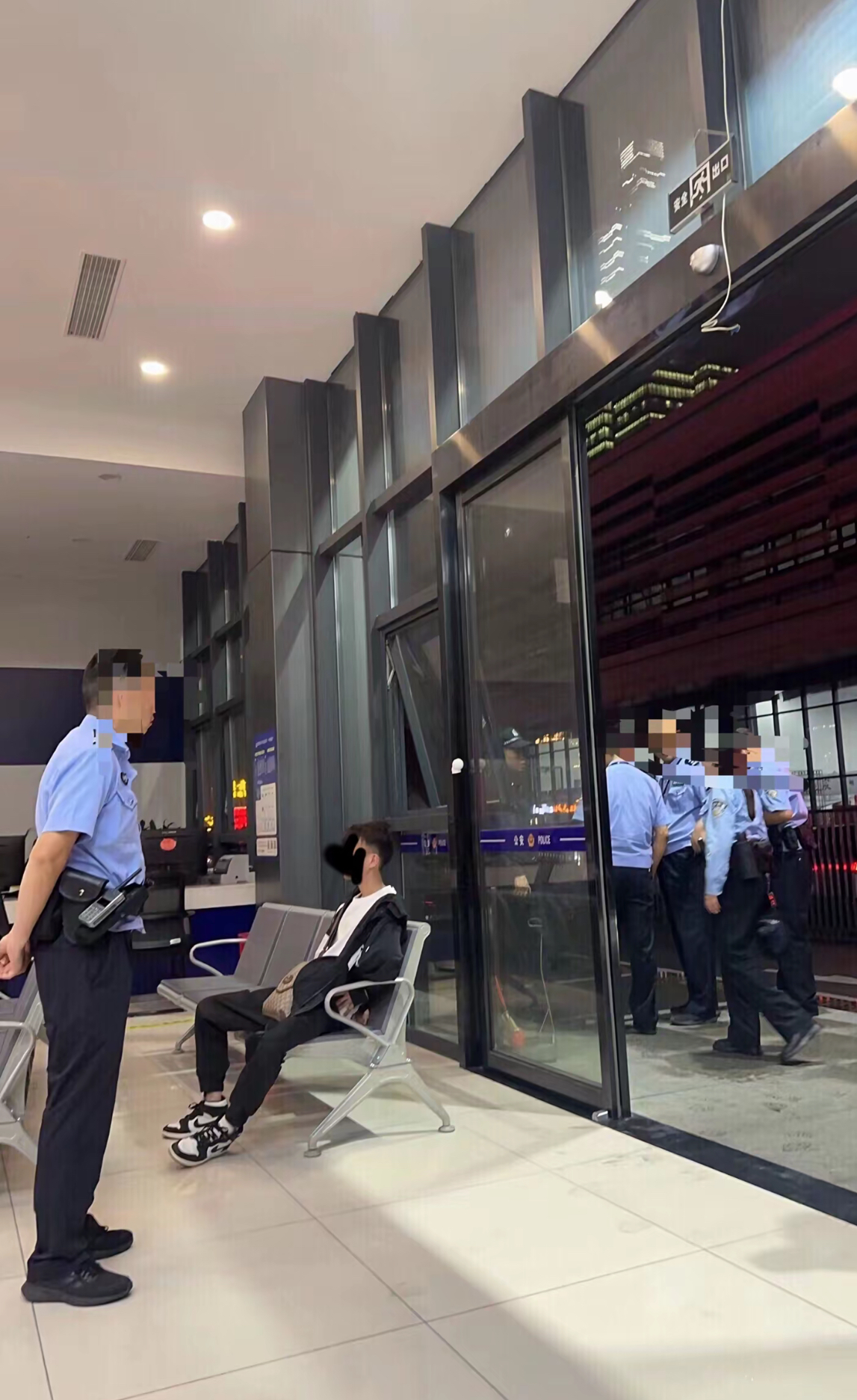 此外,女子发布了男子坐在派出所的照片以及与朋友的聊天截图。朋友称“警察围着他,问他脱没有,他说脱了。”