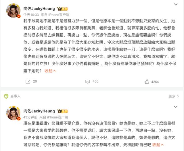 7月4日,向佐两度发文维护郭碧婷,不满妻子被质疑划水。他称郭碧婷在《乘风2024》唱歌舞蹈上花了很多很多的功夫,“你们凭什么说她”“为什么不保护下她呢?”他还表示郭碧婷不需要翻红。
