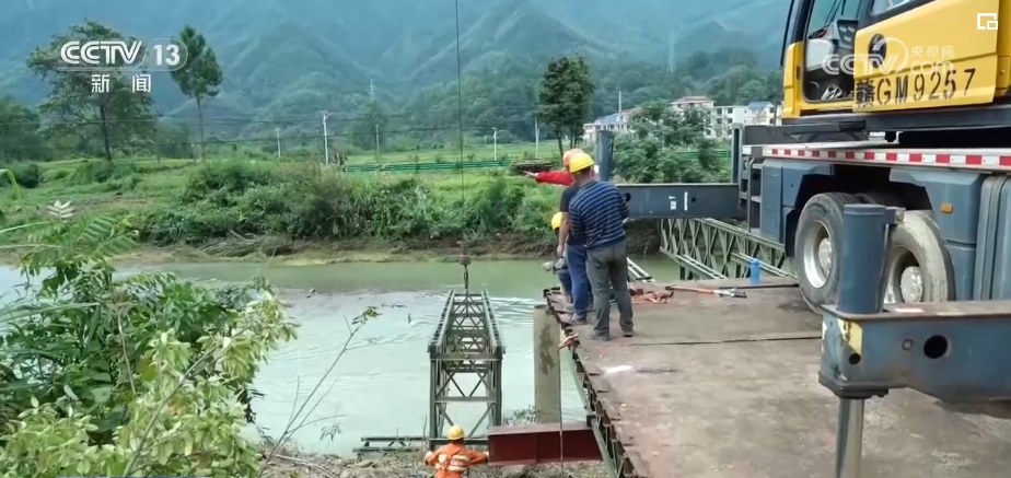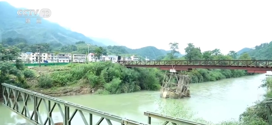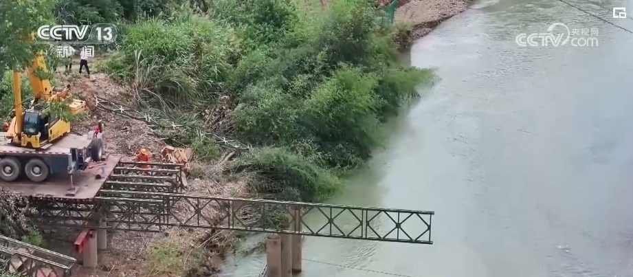 6月23日,老桥的水泥桥墩被大水冲塌,禁止车辆、行人通行。瑞昌市交通运输局组织了施工队,于6月25日进场作业,搭建临时钢便桥方便村民出行。