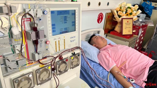7月2日8时30分,周雨躺上病床,开始被采集造血干细胞。从8时30分到13时30分结束,周雨必须保持平躺姿态不能动。“每300毫升一个循环,总共循环了16000多毫升血液,最后获得的造血干细胞300余毫升。”周雨介绍,当日中午,这袋造血干细胞搭上前往北京的航班,被紧急送往患者医院。
