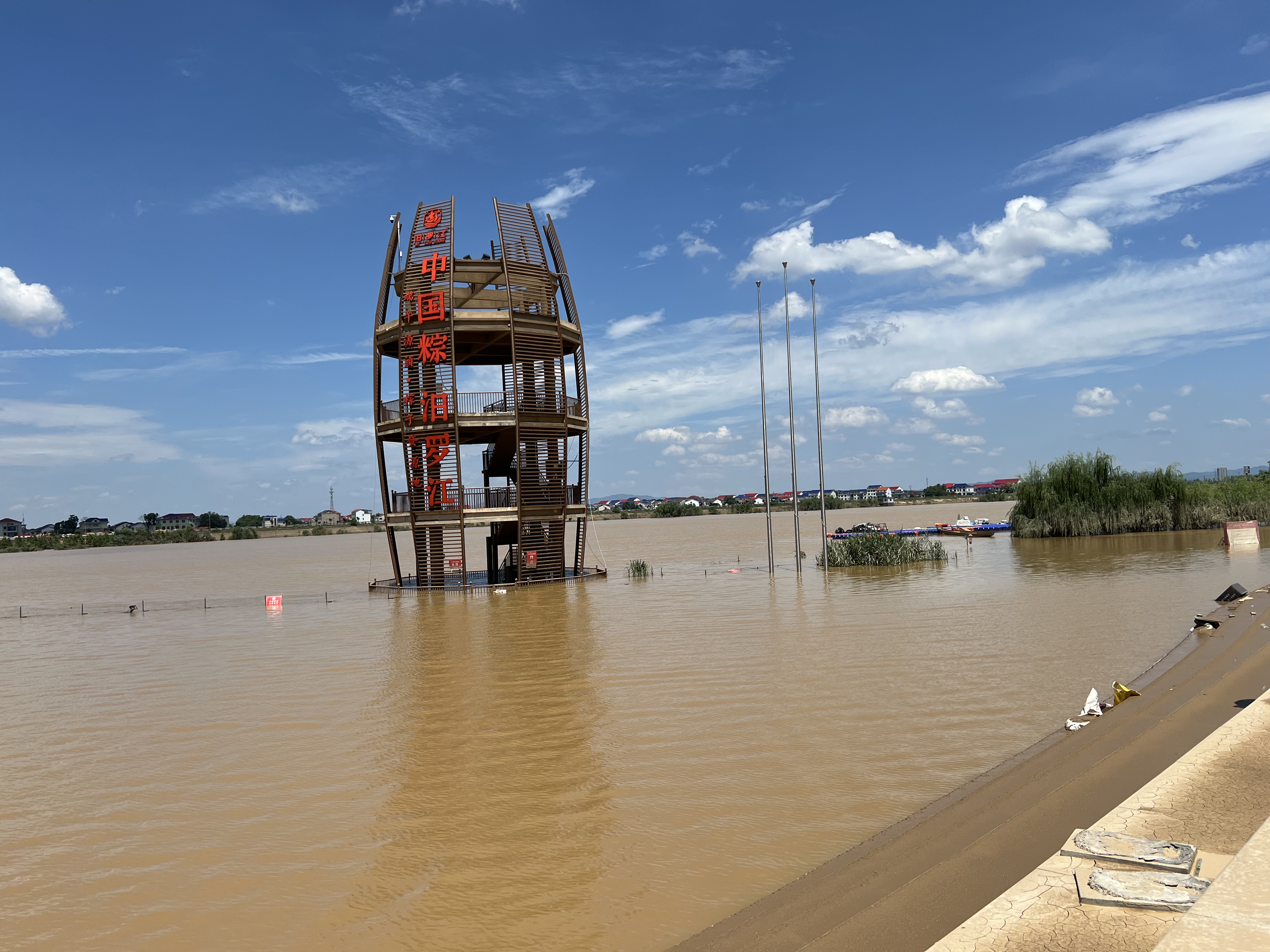 图为汨罗江水位已退至警戒线以下。科技日报记者付丽丽摄