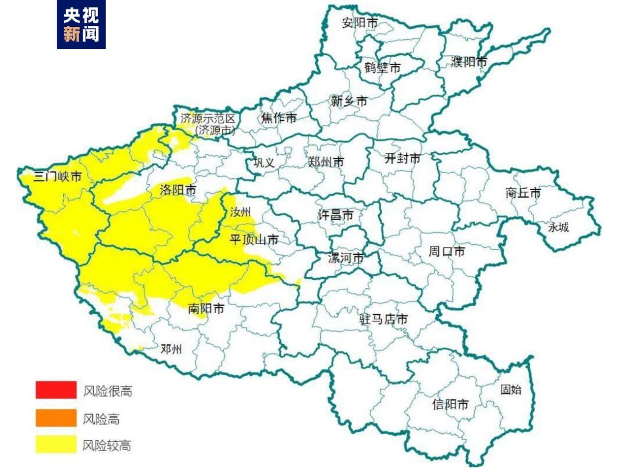 洛阳孟津区、新安县、宜阳县、洛宁县、伊川县、汝阳县、嵩县、栾川县,平顶山宝丰县、鲁山县、叶县、汝州市,三门峡陕州区、湖滨区、义马市、灵宝市、渑池县、卢氏县,南阳宛城区、西峡县、南召县、方城县、内乡县、淅川县、镇平县,发生地质灾害的可能性较大。