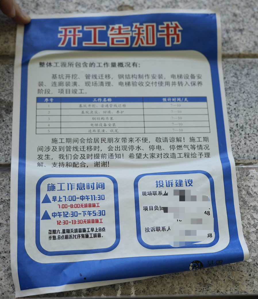 在10天的公示期内没有人提出异议,“惠泉花园43号加装电梯项目”也顺利通过了各项审批流程,取得了开工备案。