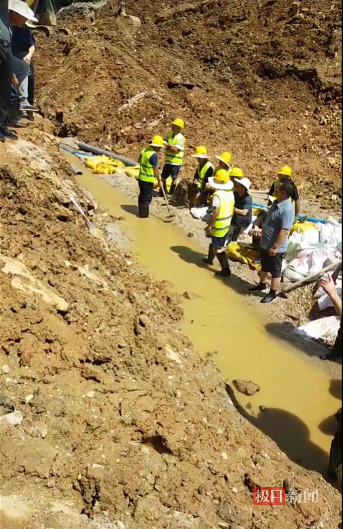 据央视新闻的报道,专家组初步分析研究,渗漏险情的漏水主要来源为:大坝内坡左侧塌陷隐患区渗漏至原底涵集中出流。7月7日13时,记者从平江县防汛抗旱指挥部获悉,当地已派潜水员下水摸排,未发现出险位置有变形、塌陷与集中渗漏等异常现象;通过开启输水隧洞放水闸阀、安装倒虹吸吸管和安排3台大型抽水机排水等措施,来降低水库水位,截至7日11时,九峰水库水位已降至123.25米;抢险人员已对坝外渗漏处采取反滤导渗措施,目前已组织2台挖机填充砂石料约300吨,将渗水排出。