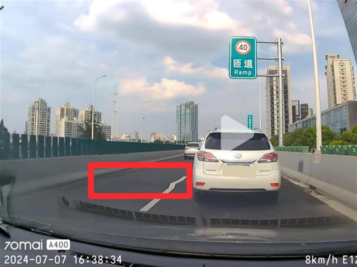 去年7月上海内环高架路面连续缝拱起(图源:受访对象提供)