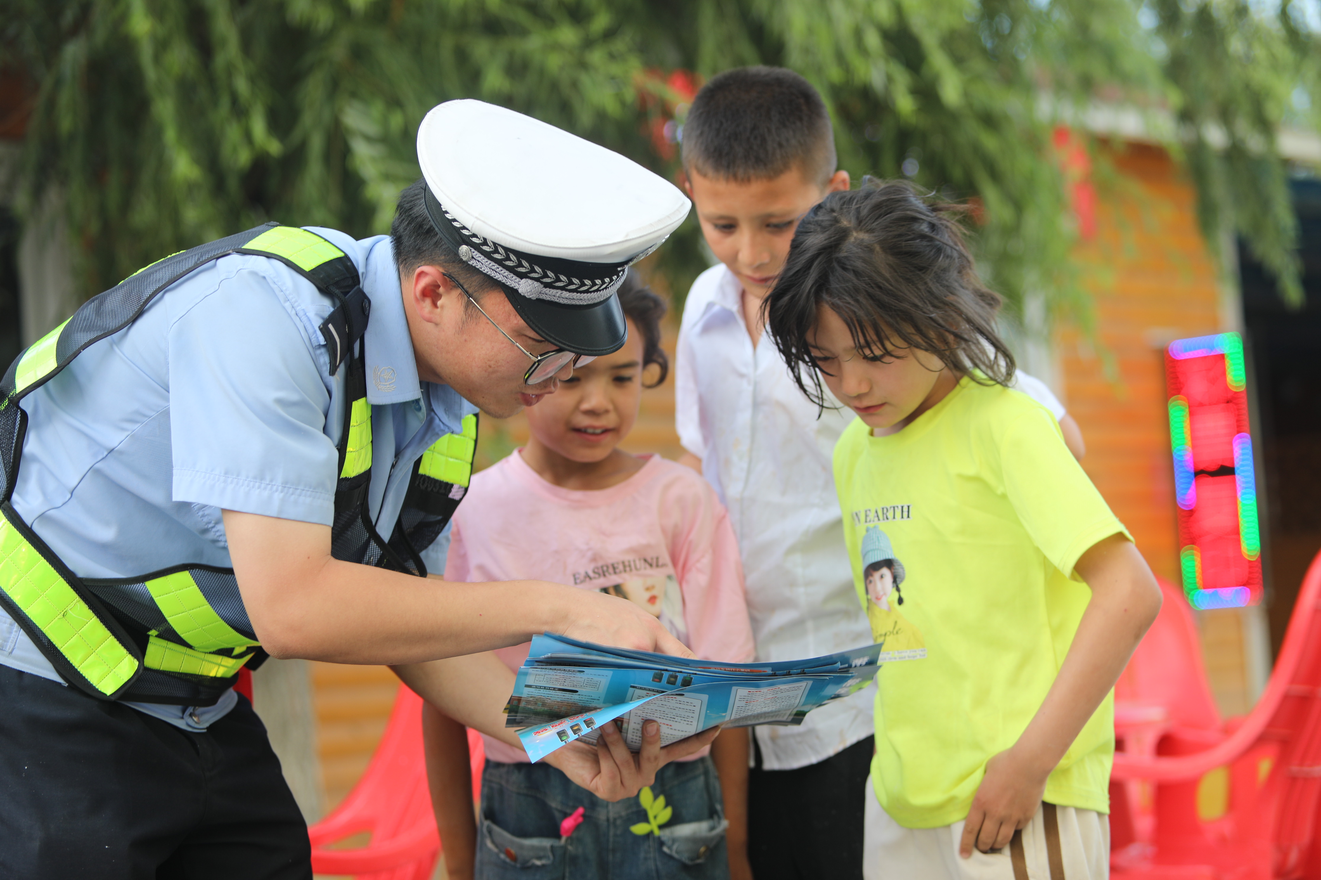 7月6日,乌恰县公安局民警在辖区夜市向未成年人讲解防溺水及交通安全知识。通讯员沙辉摄