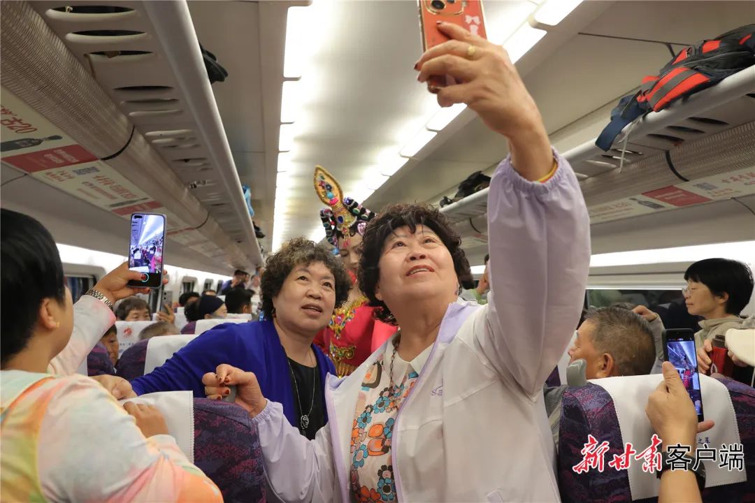 兰张高铁兰武段首发列车上的乘客。