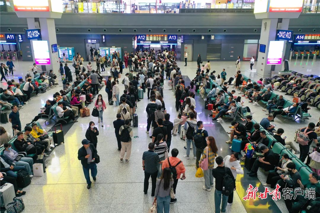 图为兰州西站排队候车的旅客。