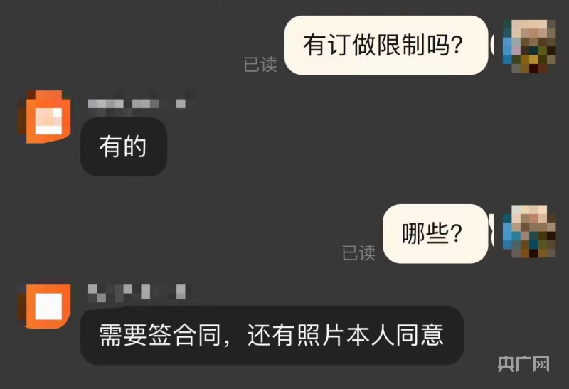 定制人脸面具需要签订“免责协议”(央广网发图片来源于人脸面具定制商家聊天记录)