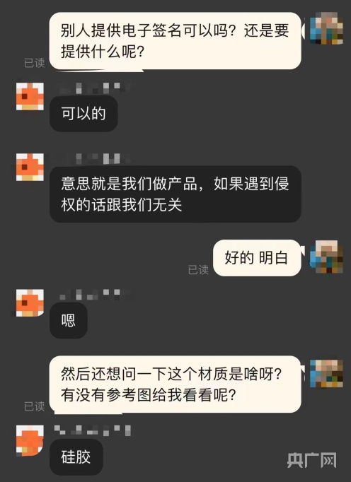 定制人脸面具需要征得照片本人同意(央广网发图片来源于人脸面具定制商家聊天记录)