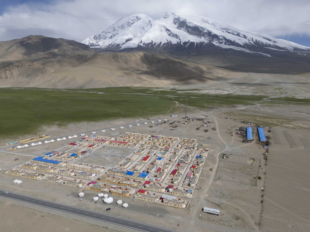 塔西巴伊家住新疆慕士塔格峰脚下的阿克陶县布伦口乡苏巴什村三小队(7月2日摄,无人机照片)。新华社记者 胡虎虎 摄