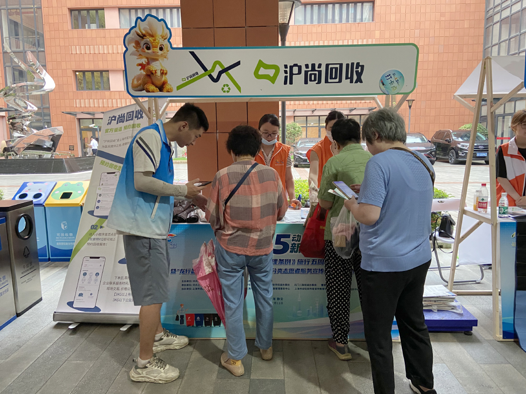 7月11日上午,2024年上海市垃圾分类志愿者服务宣传日活动(静安站),市民参与打卡活动。本文图片均为澎湃新闻记者陈悦图