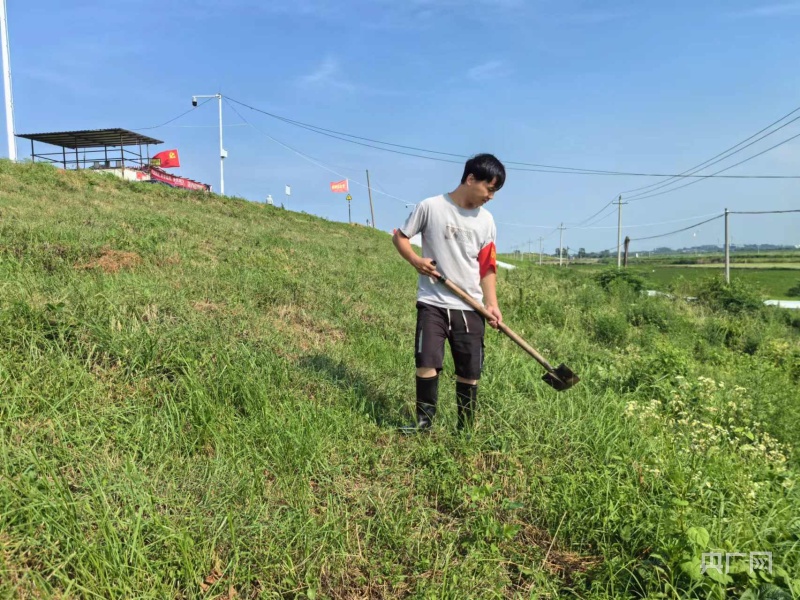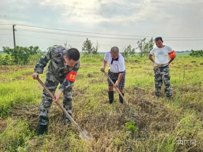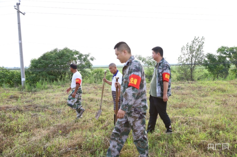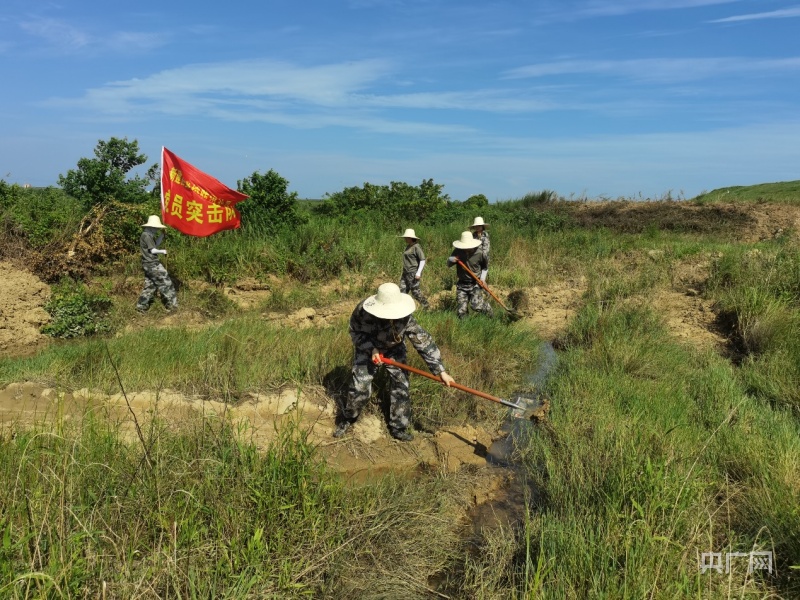 青干班学员在堤坝上开沟导渗(央广网发吴滔滔摄)