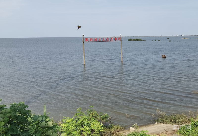 被湖水淹没的生态农庄门牌(央广网发熊妮娜摄)